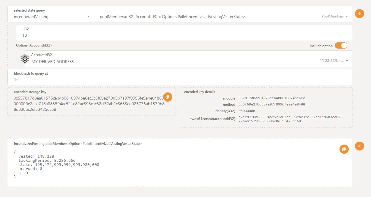 1. Select `incentivizedVesting` as the “State Query”.