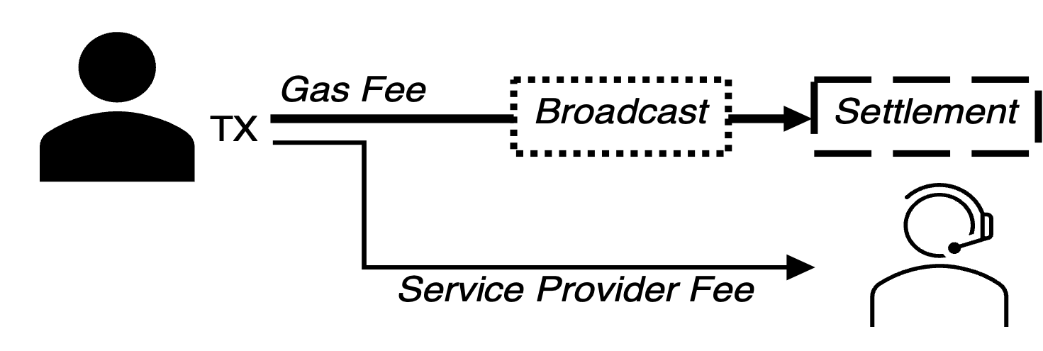 <figure><img src="https://896423194-files.gitbook.io/~/files/v0/b/gitbook-x-prod.appspot.com/o/spaces%2F37ainNYLJfxc4Gvn5BhT%2Fuploads%2FfuNp3PmMRcx3h7jHkYqK%2FPicture%2014-.png?alt=media&#x26;token=82badbe2-de63-49ca-add5-c0a4d6c6e50e" alt="" width="375"><figcaption><p><em>Figure 3: The gas fee will include the service provider’s fee. Once the transaction is broadcasted and completed, the service provider will be paid their fee.</em></p></figcaption></figure>